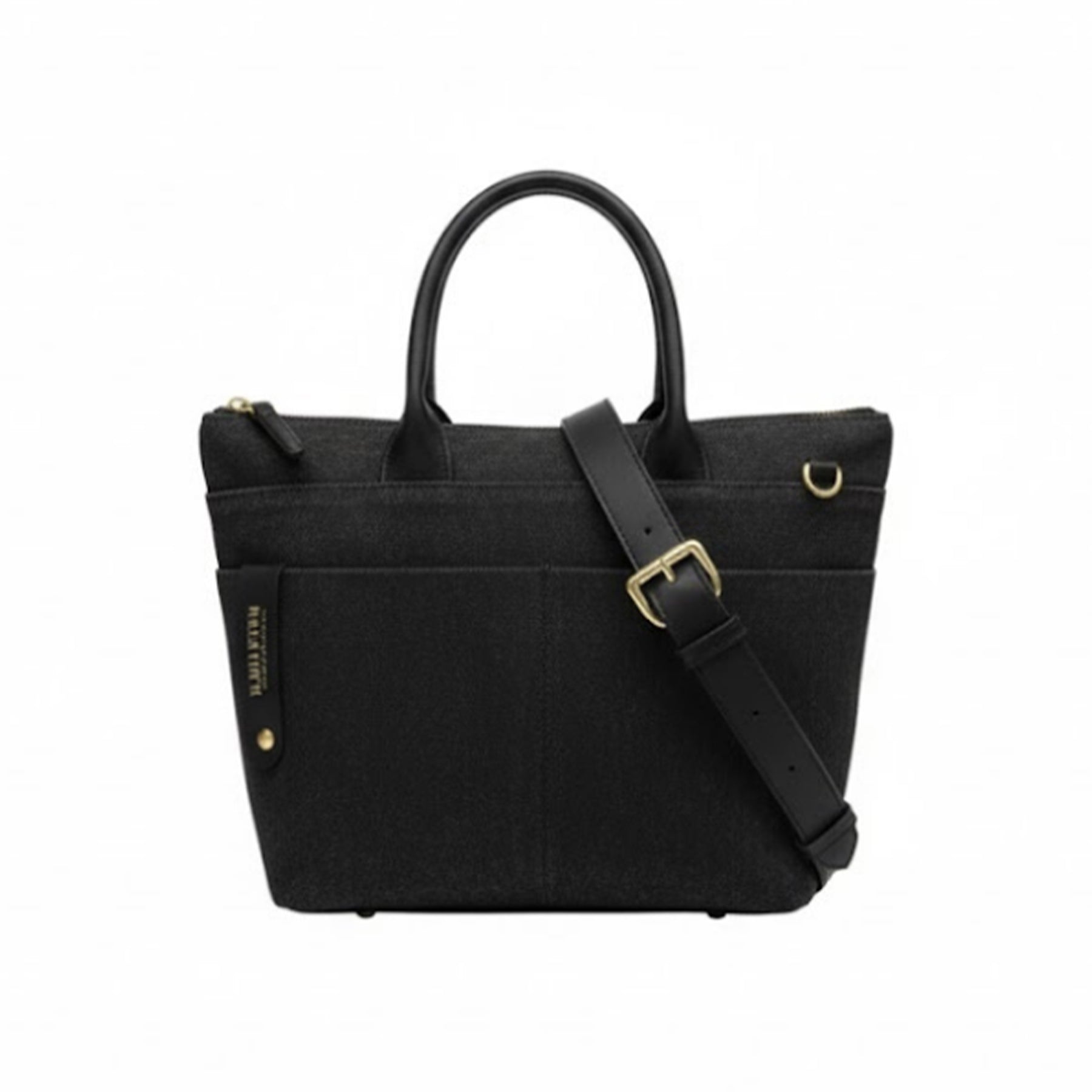 Dot | Small Tote | Black Washed Canvas + Black Leather