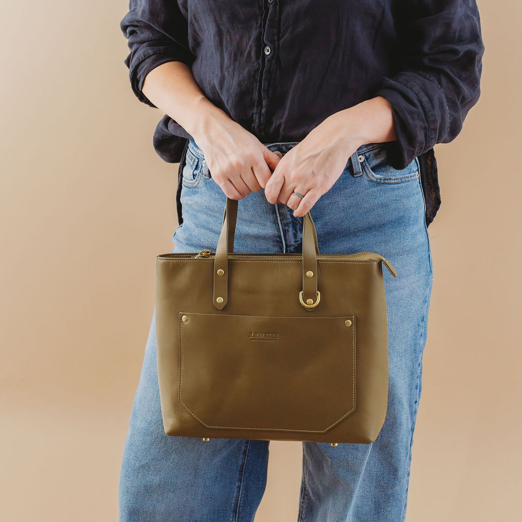 We love using real veg tanned leather in our handbags because they just better with age. If you happen to get scratches or water marks, you can usually get the bag looking new again with just a little maintenance.