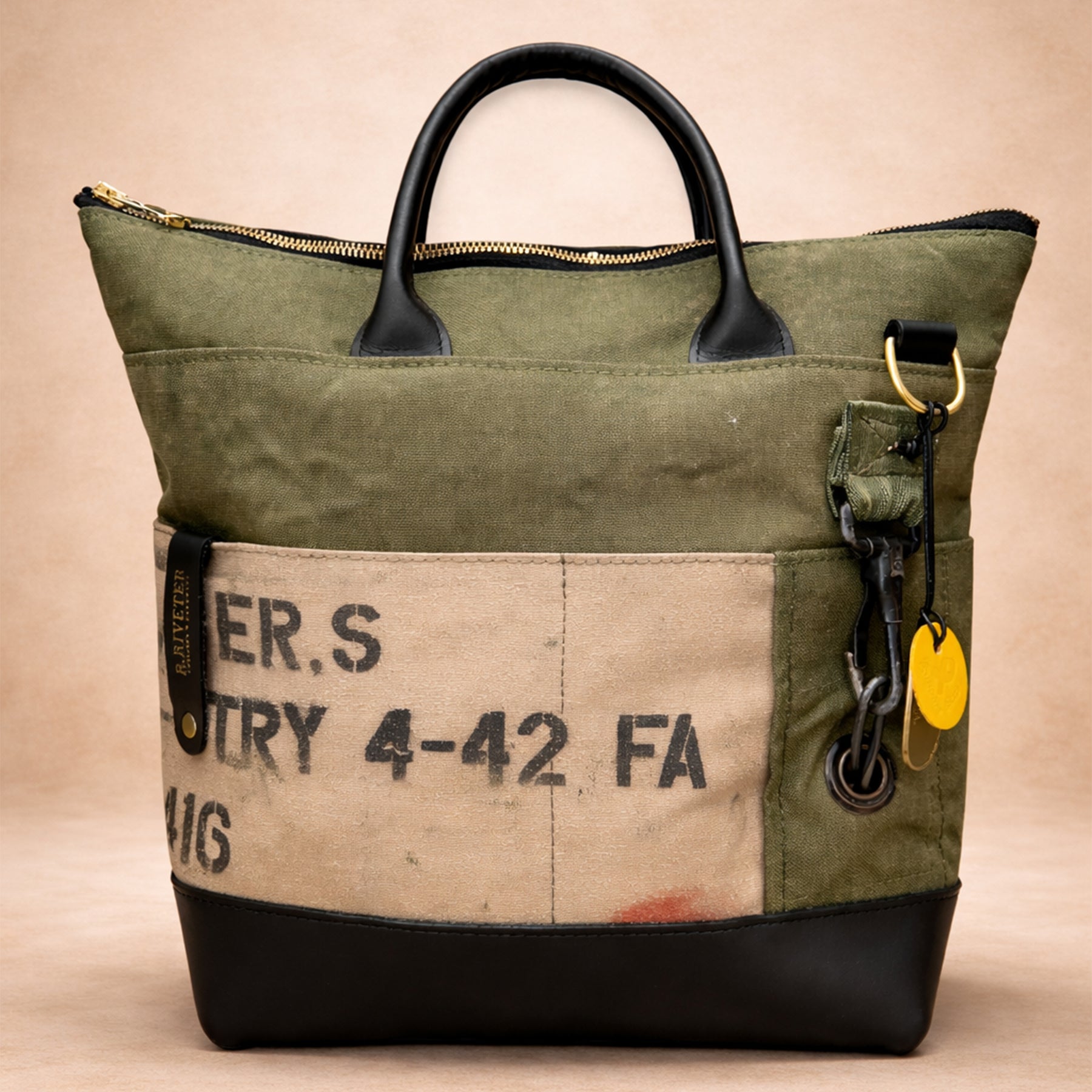 Riveter’s Warranty will still cover craftsmanship, zippers, snaps, and hardware, etc for 1 year. However, due to the nature of the Limited-Edition materials, we are unable to offer warranty repairs on the upcycled materials portion of the handbag.